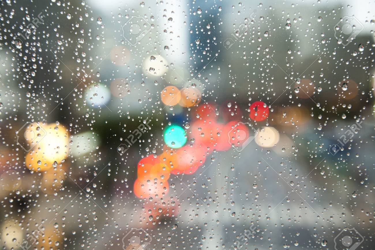雨の窓から街の景色をデフォーカス の写真素材 画像素材 Image